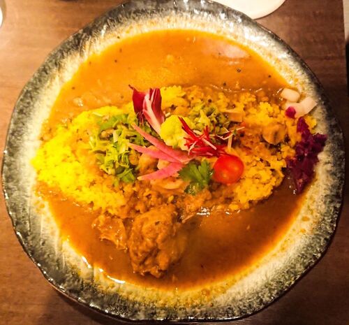 北新地のスパイスカレー屋シナジーさん✨食べログカレー百名店west2019に選出されております。土、日、祝が定休日かつ昼のみ営業の訪問難易度高めのお店です。 ランチ激戦区の北新地ですが、ザ・新地のお店の雰囲気です。店舗は2Fにあり、ピンクの扉を開ける…