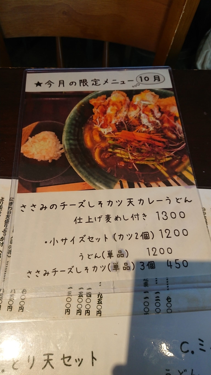10月の限定が美味しそうと思いながらも、鶏天が人気ということで